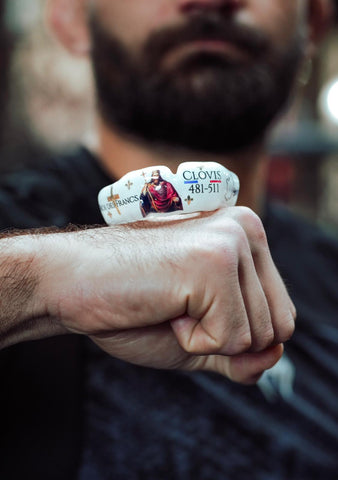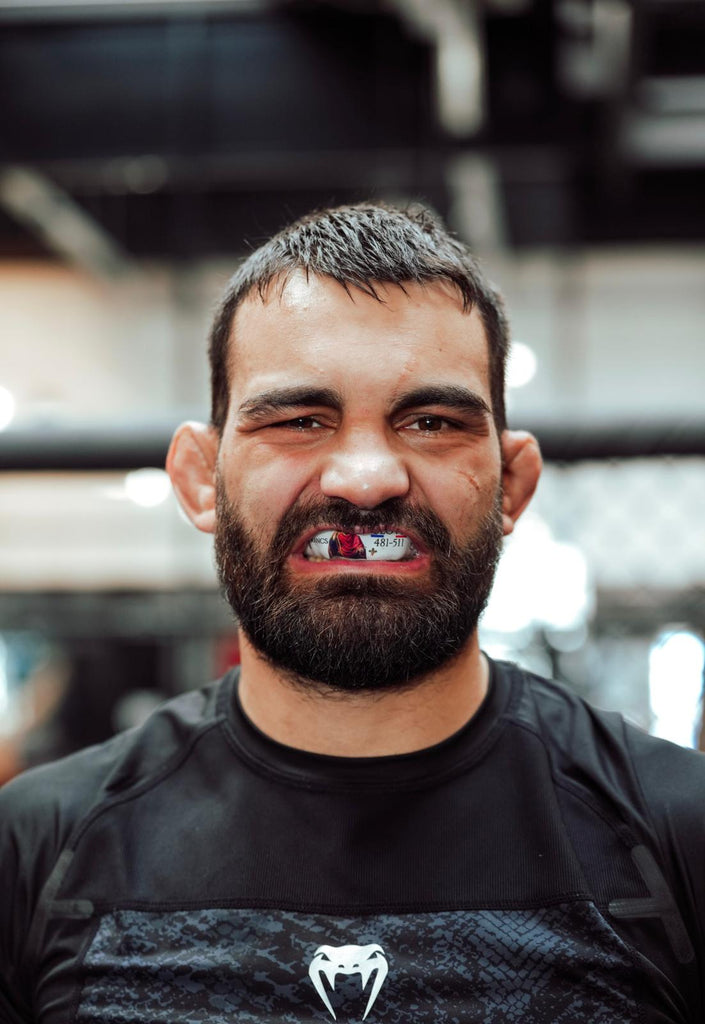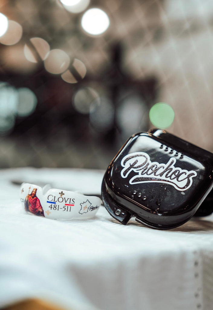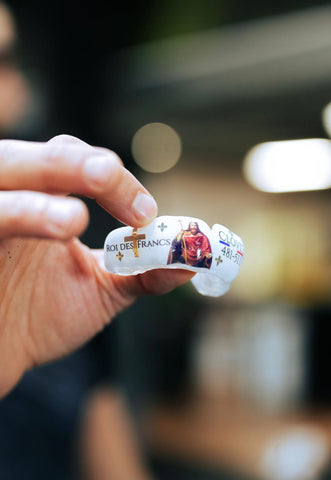 Voici le protège-dents Clovis dessiné en collaboration avec Benoît Saint-Denis, qu'il à porté lors de son combat contre Dan Hooker à UFC 325 de Sydney.
